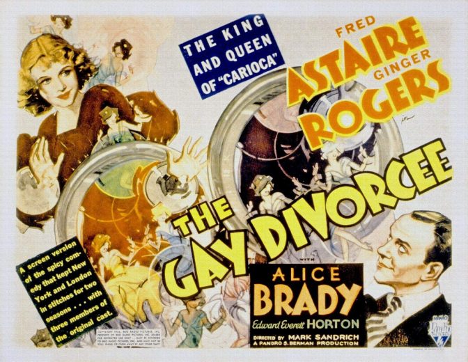 THE GAY DIVORCEE marked the first star billing for Fred Astaire and Ginger Rogers. Fred stars as Guy Holden, an American dancer on vacation in England who falls for Mimi (Ginger) and feigns an illicit affair with her to help her secure a divorce from her geologist husband. The film’s title started out as THE GAY DIVORCE when it was a hit Broadway musical in 1933, but was changed for the film. In 1930s Hollywood, the idea of a happy divorcee was palatable. The idea of a happy divorce? Not so much.